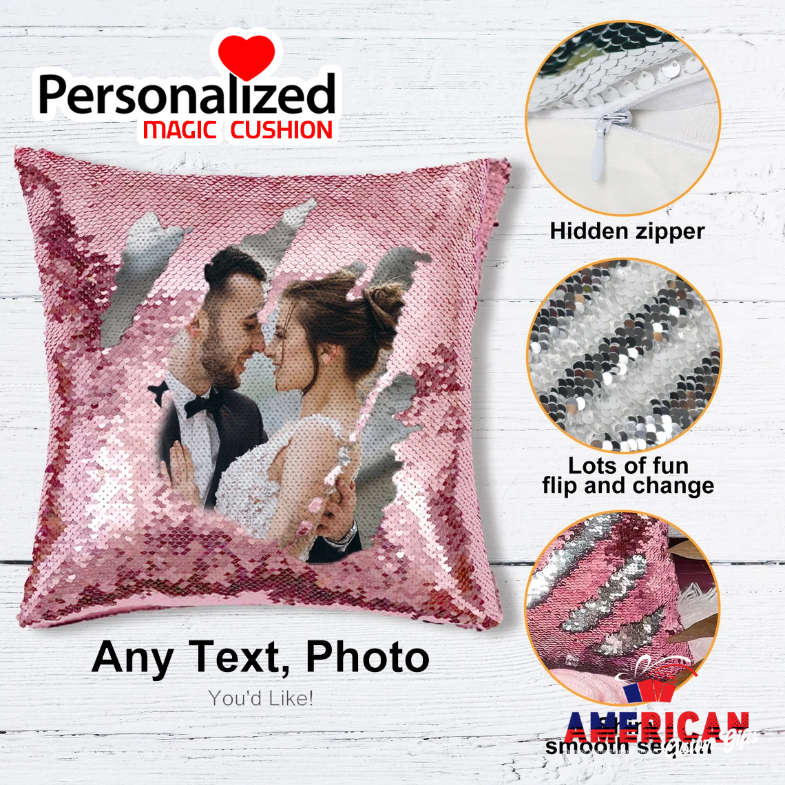 👉 Order your Custom Magic Sequin Pillow from American Custom Gifts today and make every memory shine!